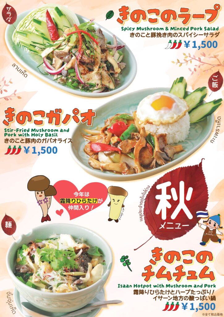 いつもご愛顧いただき誠にありがとうございます。2025年10月1日(水)~きのこを使った季節限定メニューを全店※東京ドーム店を除くで販売を開始いたします。